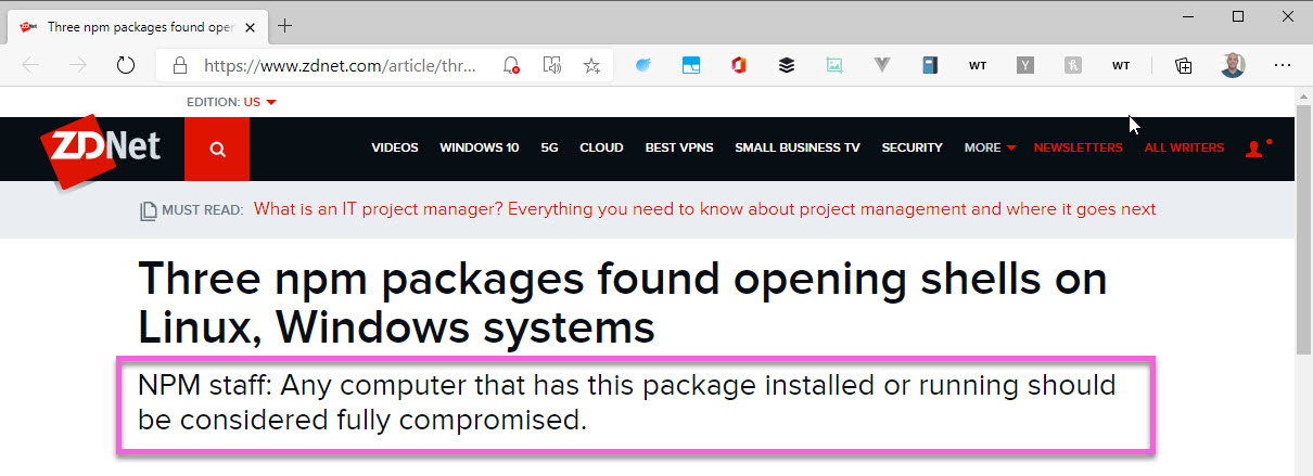 That's heavy. And it can happen to anyone. And if you read that article, it says that even uninstalling the module doesn't mean you are safe. Because who knows what these packages installed and ran in the background?